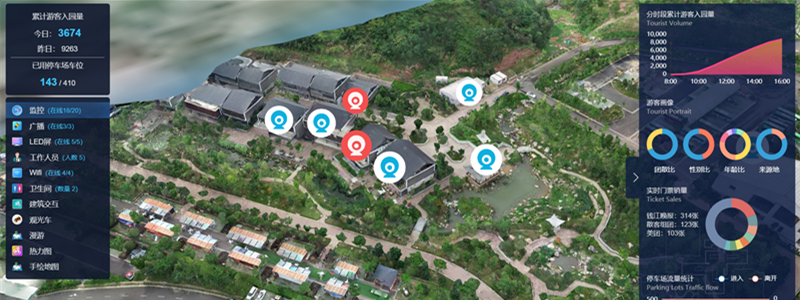 單景區(qū)采用GIS+三維空間建模,全域范圍采用GIS+2D建模,最大程度還原景區(qū)真實(shí)場(chǎng)景,一張圖多維度管控。