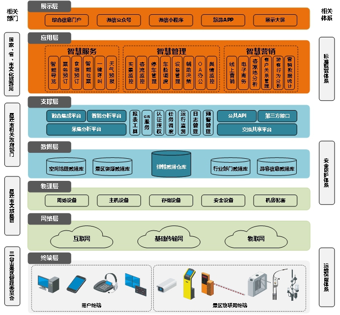 因此,本期三臺山森林公園項(xiàng)目是改造提升項(xiàng)目,故需在原有信息化的基礎(chǔ)上進(jìn)一步完善基礎(chǔ)設(shè)施建設(shè),形成真正的一體化智慧景區(qū)。